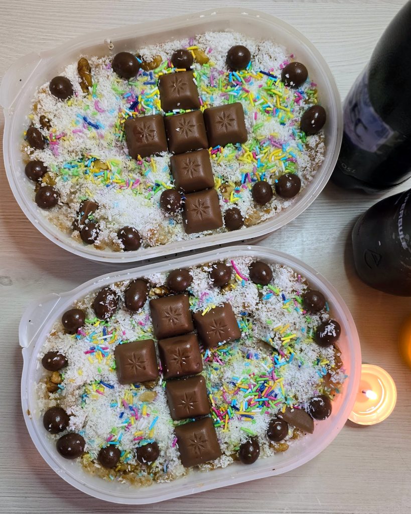 In Orthodox tradition, coliva is a dessert made from boiled wheat mixed with sugar, nuts or cocoa, and decorated beautifully on top. Prepared in memory of loved ones who passed away, it’s brought to church, blessed, and then shared with others.